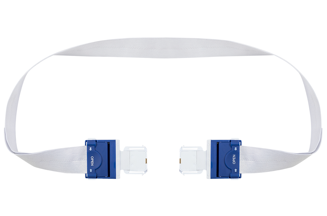 As cintas indutivas pré-cortadas se entrelaçam nas abas de fácil abertura através de uma fivela na interface indutiva, fixando as mesmas durante o exame. Podem ser ajustadas de acordo com a circunferência do paciente, proporcionando conforto e praticidade durante todo o registro domiciliar.